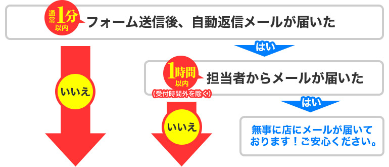 なのでフォーム送信後1時間以内に連絡がない場合は別のメールアドレスを使うか、電話での問い合わせがおすすめ。
